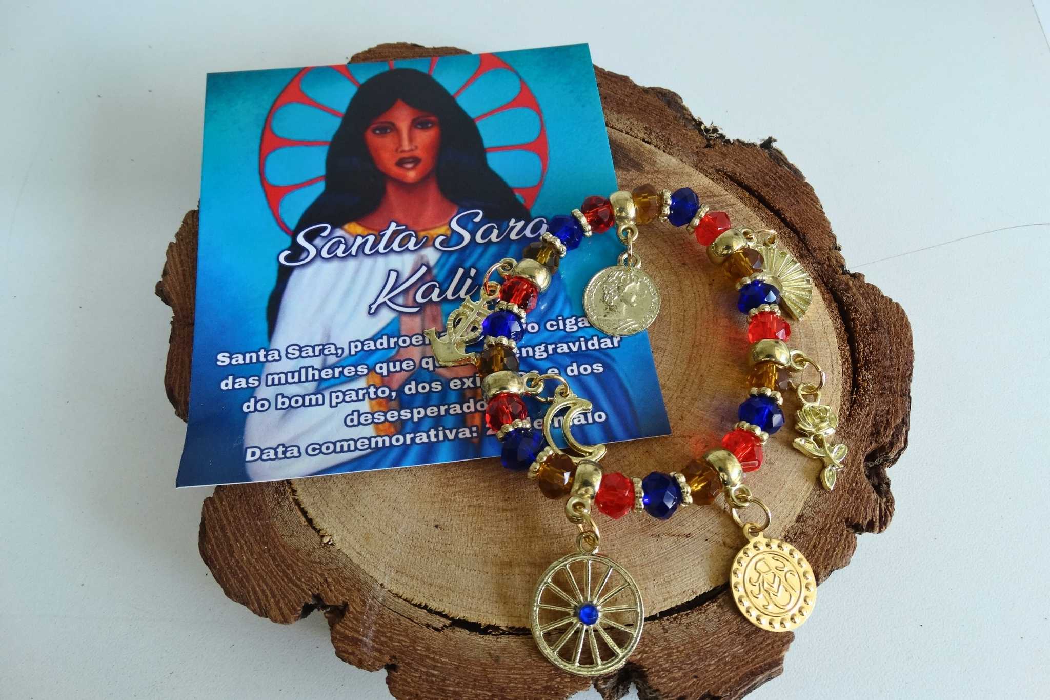 Vista a fé inabalável e a proteção milagrosa de Santa Sara Kali, a Rainha do Povo Cigano. Esta pulseira é mais do que um acessório: é um poderoso amuleto que atrai sorte, cura e prosperidade para seus caminhos.